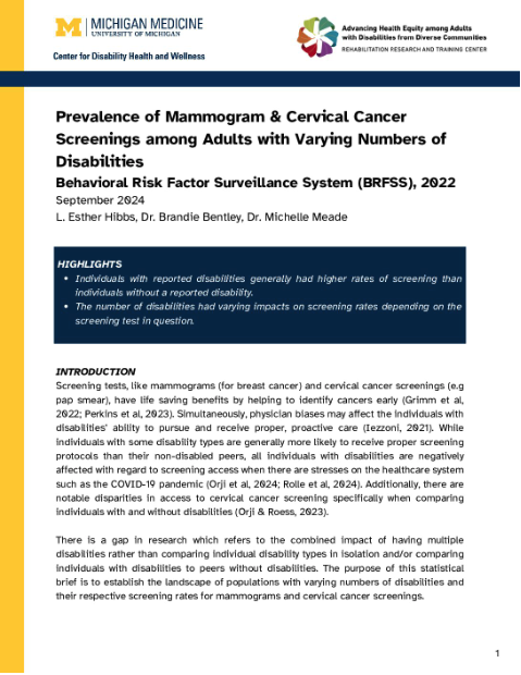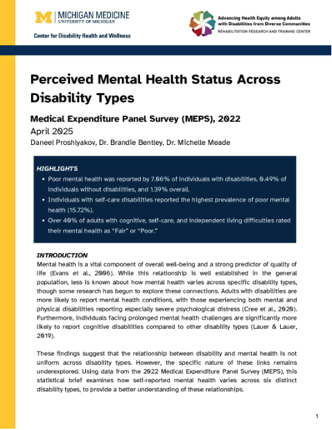 Each brief highlights findings associated with health care access, quality, and outcomes among people with disabilities, with particular attention to subpopulations defined by disability type, age, race, ethnicity, gender identity, sexual orientation, and other intersecting social and demographic characteristics.